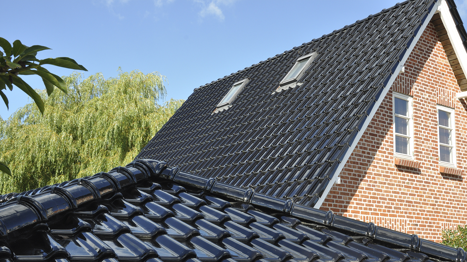 Laumans’ Tiefa Variable interlocking roof tile has a clean and rounded shape that makes for an exciting contemporary roof. The deep black glaze is generously poured over the roof tile to proved a glaze with depth and play of colours - and not just sprayed on in a thin even layer. Tiefa XLVariabel is an exclusive roof tile, but at an extremely reasonable price, because there only 12.4-12.7 roof tiles are used per sq.m. There is a complete accessory programme in glazed tile for Tiefa XLVariabel.